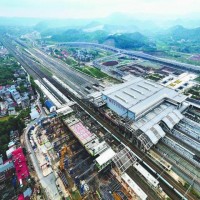 庐山火车站东站房钢结构组合体顶推成功