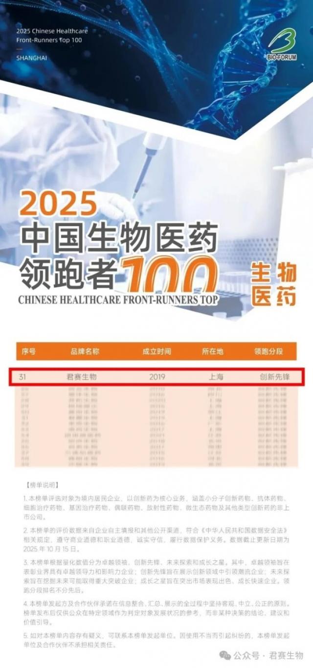 君赛生物蝉联中国生物医药领跑者100榜单