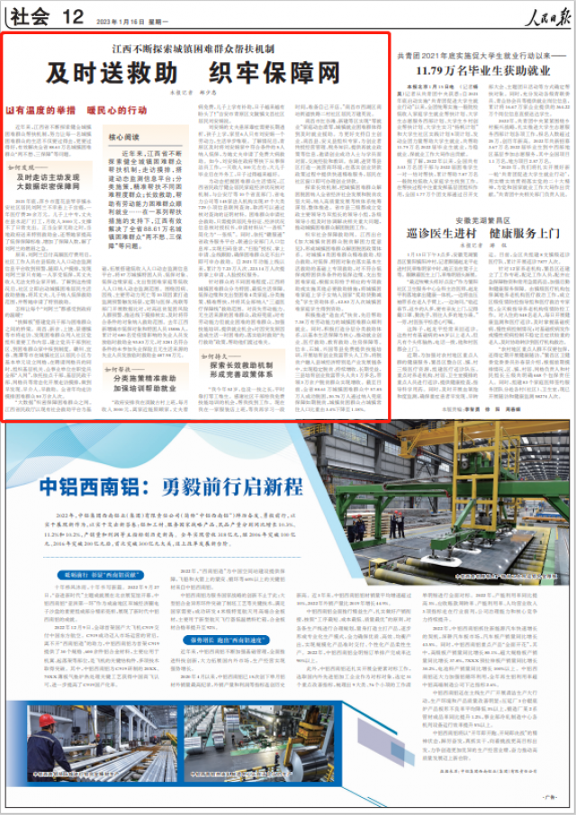 人民日报报道江西:及时送救助 织牢保障网