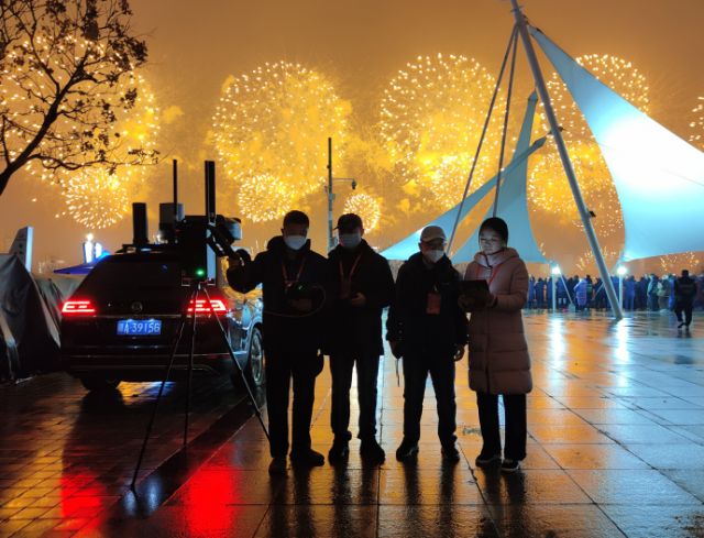 此次烟花晚会,分为烟花、无人机、灯光秀、喷泉共四组表演元素。无线电调度指挥的顺利畅通直接关乎10万发礼花的有序燃放和1000架无人机正常的表演,保障责任重大,使命光荣。赣中中心派出精兵强将参与晚会的筹备工作,为导演组指配中继频率2对、对讲机频率10组、协调对讲机80部、核查无线电发射设备120台/套,为保障无线电通信畅通提供了坚强的技术支撑。晚会前夕,赣中中心开启11座固定监测站,派出工作人员48人/次,出动移动监测车12车/次,启用便携式监测设备60台/套,对晚会现场及周边开展了24小时电磁环境监测,组织技术力量连续多日夜以继日地实地开展电磁环境监测,采集频谱数据,比对分析,仔细排查可疑无人机、对讲机发射信号和干扰隐患,进一步摸清无线电频率使用情况,做到心中有数。晚会当天,赣中中心提早来到现场指定监测位置,对无人机、对讲机等重点频率进行保护性监测,经过辛勤坚守,顺利完成了保障任务。