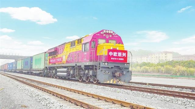 前不久,一列搭载50个集装箱的中欧班列从湘东工业园内的赣西国际港发出。