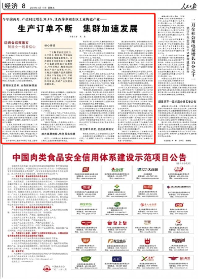 人民日报报道江西萍乡湘东区工业陶瓷产业:生产订单不断 集群加速发展