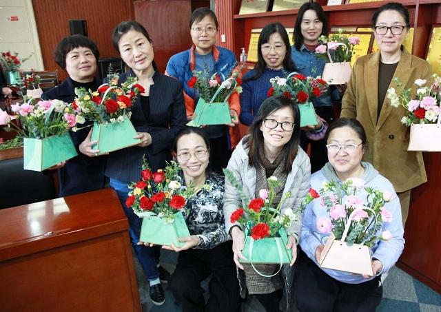 “在动手中找到乐趣,从自己的作品中收获喜悦。知美、爱美、尚美,才能拥有美好的生活乐趣!”女职工们捧着亲手制作的插花作品喜不自禁。(宋丽娟)