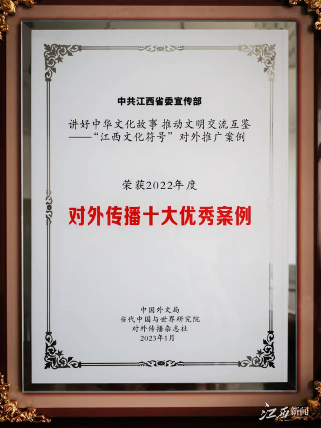 “江西文化符号”对外推广案例获“2022年度对外传播十大优秀案例”