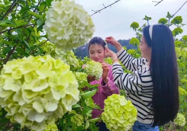 徐徐春风中,漫山遍野的木绣球恣意绽放,一团团,一簇簇,温润如玉,洁白如雪,清新淡雅,分外动人。从四邻八乡闻讯赶来的数千名游客,慕名而来的众多摄影爱好者、媒体人,或徜徉花丛,嬉笑打趣;或秀姿摆酷,自拍晒图。民俗表演、激情摇滚、花车巡游、美食长廊……让这里变成了欢乐的海洋。