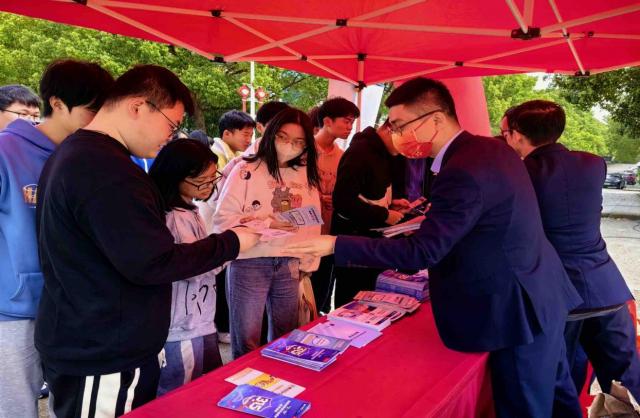 图为浦发银行南昌分行开展金融知识进校园活动,向在校大学生开展金融消费者权益保护宣传工作。
