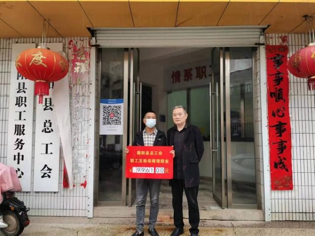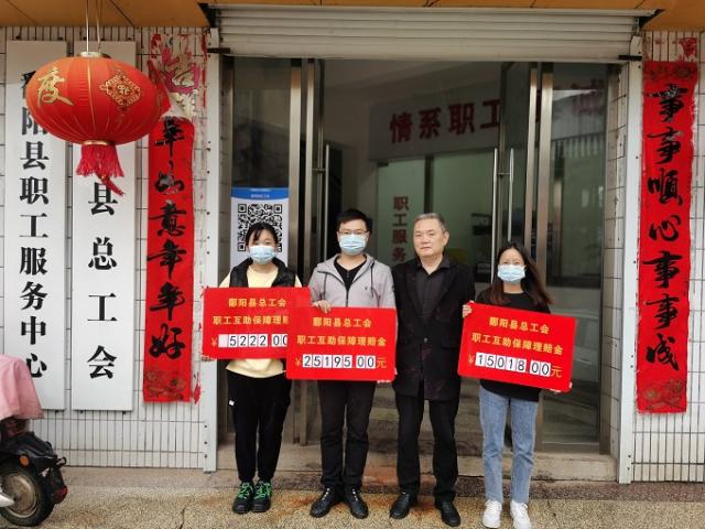 鄱阳县总工会举行职工互助保障理赔金集中发放仪式