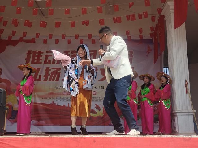 随后,广场舞、移风易俗知识抢答、赠送书法等一批彰显移风易俗主题的节目和环节轮番上场,以群众喜闻乐见的形式引导广大青年男女转变婚恋观念,提倡自觉抵制高价彩礼,树立文明新风,赢得了现场观众的阵阵掌声。村民们积极参与、兴致高涨,现场热闹非凡。