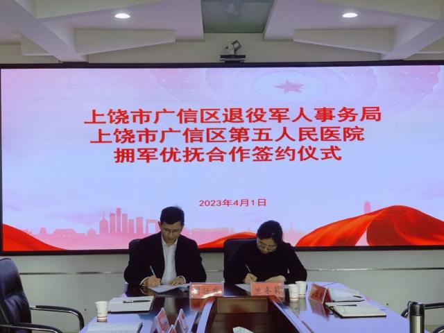 广信区第五人民医院与区退役军人事务局举行拥军优抚合作协议签约仪式