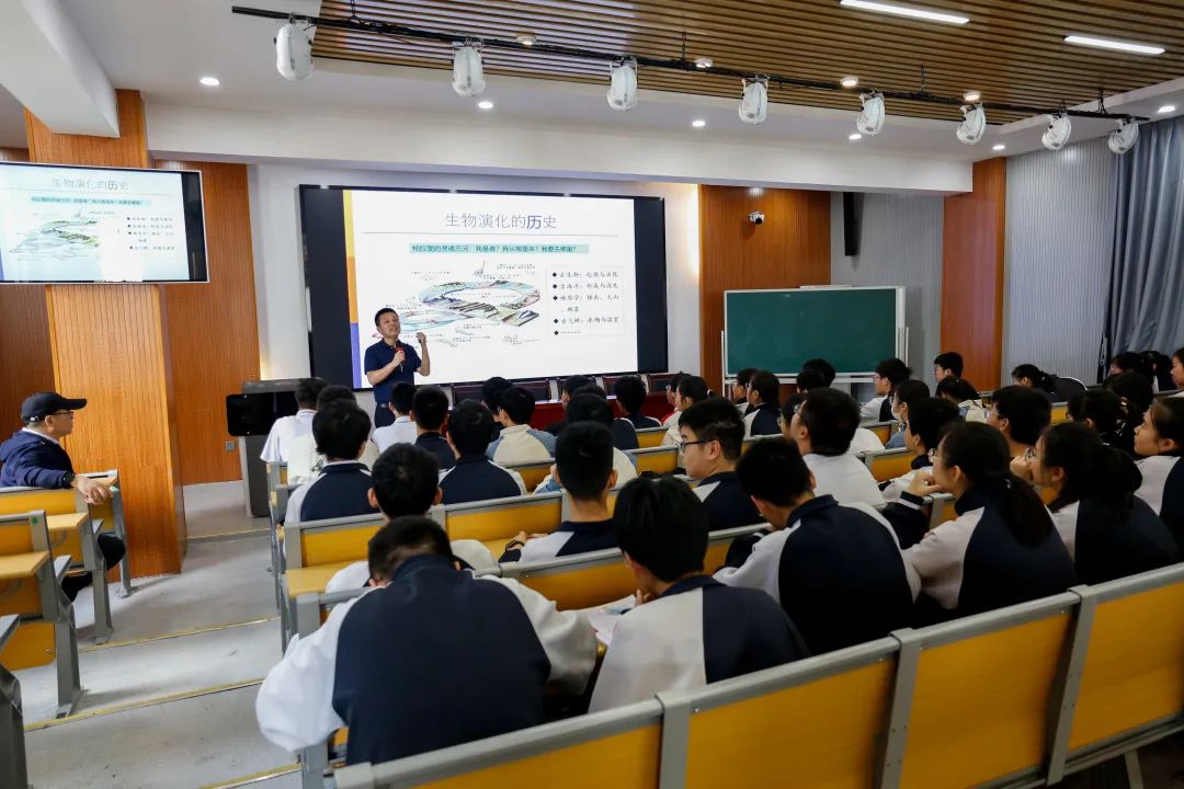 授牌仪式结束后,南京大学地球科学与工程学院姜宝玉教授对高二年级部分学生进行了一场题为《化石与生命演化》的精彩科普宣讲,为该校学生打开了科学的大门,拓宽了学生的视野,埋下了科学的种子。