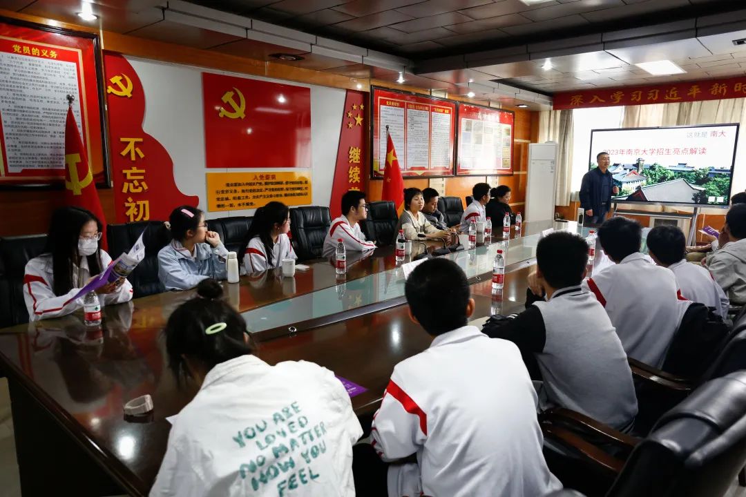 最后,南京大学招生组向高三部分学子进行招生宣讲。南京大学属国家“双一流”“985工程”“211工程”重点建设高校,是首批国家级双创示范基地,为国家培养了一大批优秀的人才,对我国尖端科技发展起着重要的作用。宣讲活动既让同学们对南京大学有一个更加全面深刻的了解,又提振了同学们的迎考信心。