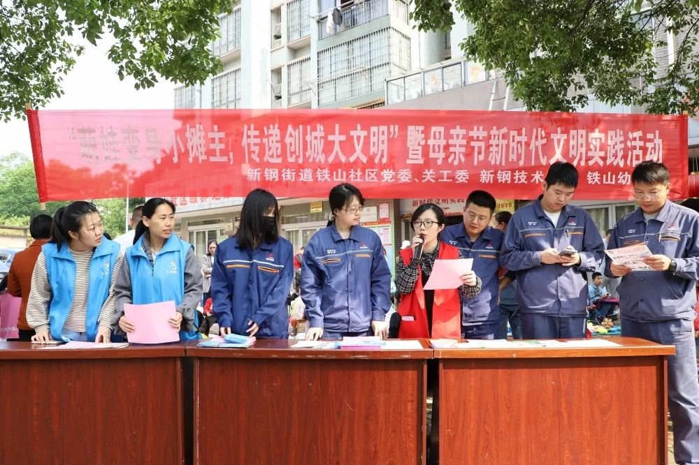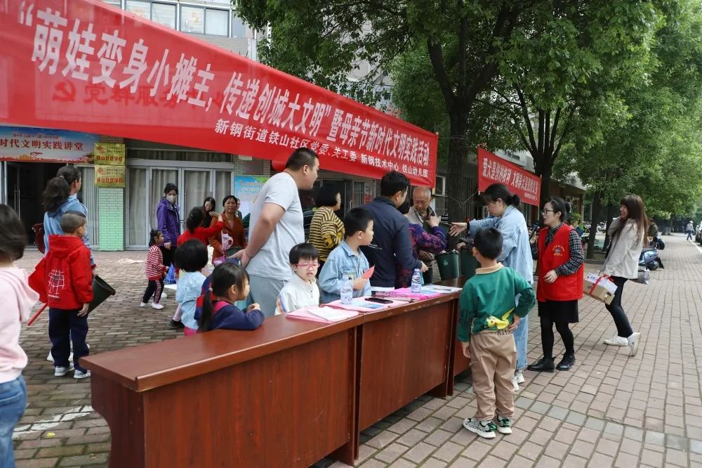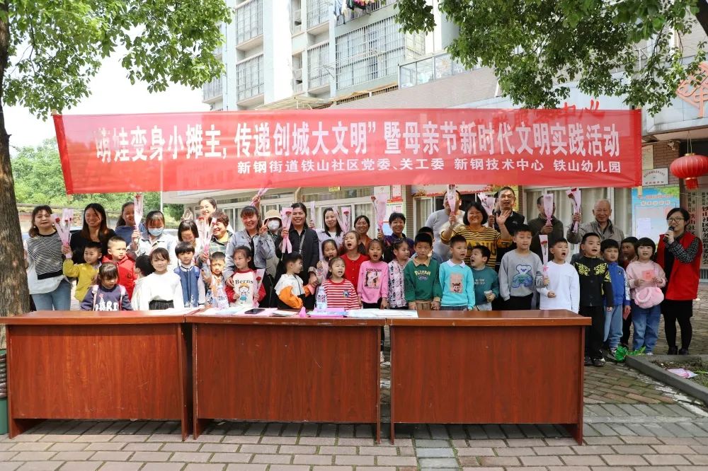 在母亲节到来之际,为了培养孩子的语言表达能力、沟通能力,在情景模拟和社会实践中懂得父母的辛苦,学会感恩,5月12日,新钢街道铁山社区党委、关工委联合“钢城红”党建联建单位新钢技术中心党委、铁山幼儿园开展“萌娃变身小摊主,传递创城大文明”母亲节新时代文明实践活动,让孩子们通过自己的努力,为妈妈准备节日礼物,表达自己的爱。