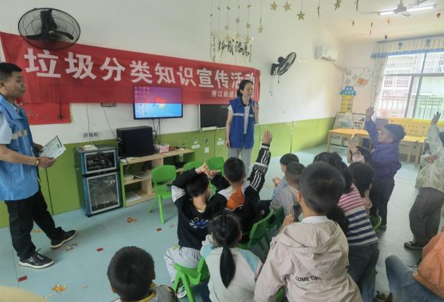 为更好地普及垃圾分类知识,培养幼儿从小养成垃圾分类良好习惯,5月25日上午,宜春市袁州区秀江街道潭前社区在安吉儿幼儿园开展垃圾分类知识宣传进校园活动。