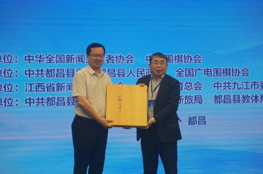 中国围棋协会副主席聂卫平向都昌县政府捐赠“棋圣”聂卫平亲笔签名棋盘