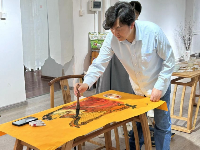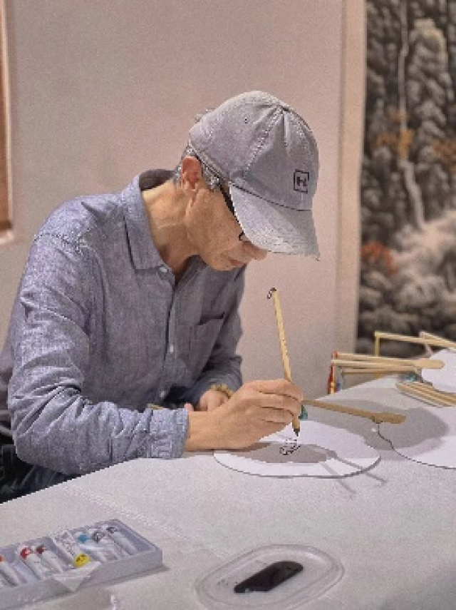 让雅集参与者赞叹的是,书法家杨玉来、画师朱士岚受邀现为大家在手工扇面题字作画,现场嘉宾欢喜满满。
