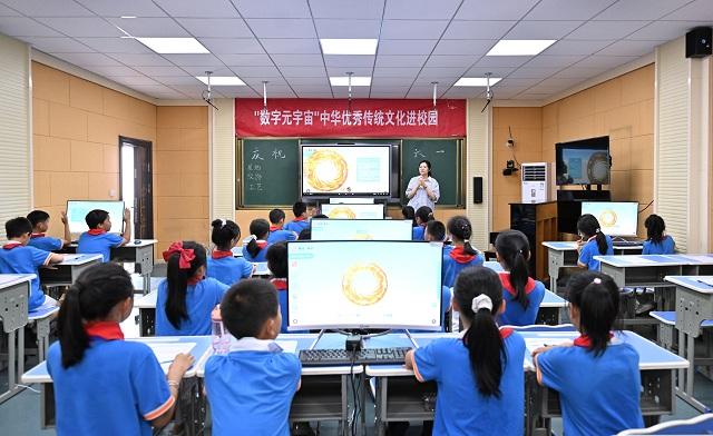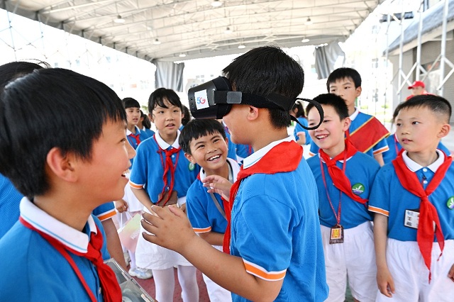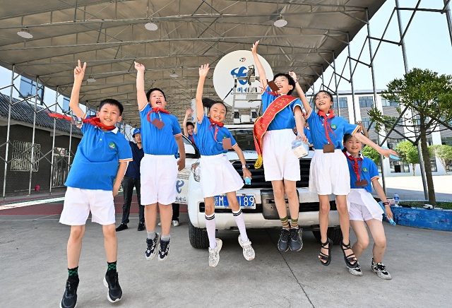 在庄重的升旗仪式后,中国电信的大哥哥大姐姐们就开始忙碌起来,他们有的陪孩子们打开了画纸,一起描绘起快乐的节日;有的当起了老师,课堂上通过5G网络,天翼云电脑展现出逼真的元宇宙世界,用心陪伴孩子们在知识的海洋里遨游;还有几位穿制服的电信大哥哥,启动了应急通信保障车,升起了高高的5G基站,转动了卫星天线,让山区的孩子们惊叹于通信技术变化之快,陶醉于技术精进带来的精彩。