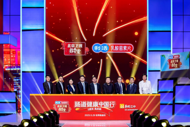 2023年,在江中利活携手北京卫视《养生堂》打造的肠道健康科普节目中,华润江中制药集团有限责任公司总经理刘为权率华润江中代表与北京广播电视台北京卫视频道中心副主任、京视健康董事长田丰,以及多位临床专家、行业、产业嘉宾,共同开启2023“江中利活·肠道健康中国行”五周年点亮仪式。