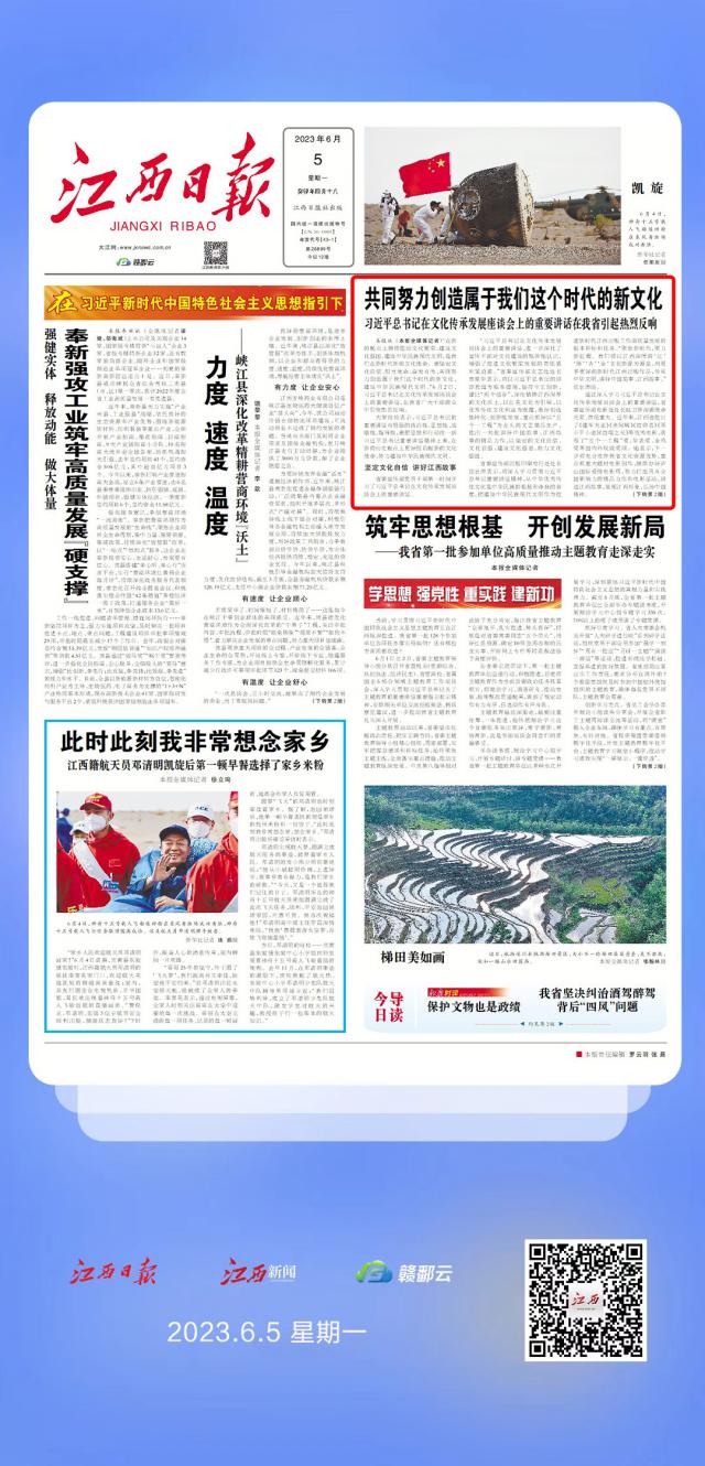 江西日报头版报道:共同努力创造属于我们这个时代的新文化
