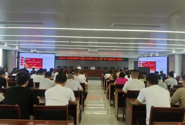 6月4日,广信城投集团2023年干部职工专题学习会召开,集中学习研讨《中华人民共和国民法典》、招投标专项知识等内容。党委书记、董事长王友明出席并作开班讲话,集团公司全体干部职工及子公司部分职工参加学习会。
