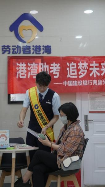 港湾在哪里,关爱就在哪里。结合考生即将外出求学的实际情况,在考点外的爱心助考补给站和劳动者港湾内,建行南昌分行都安排了工作人员宣讲金融知识、法律知识等。他们热情地向陪考家长们讲解手机银行转账、存款保险、反洗钱、防范电信诈骗等相关金融知识,帮助家长进一步丰富金融知识。