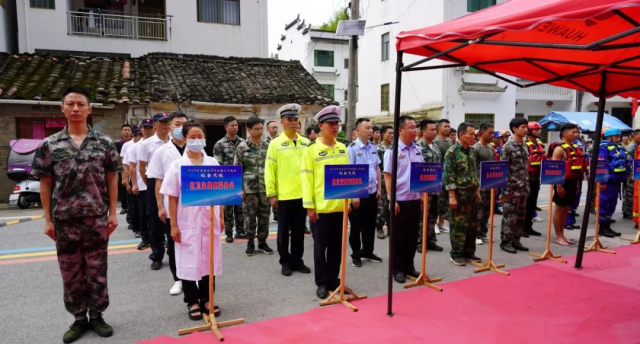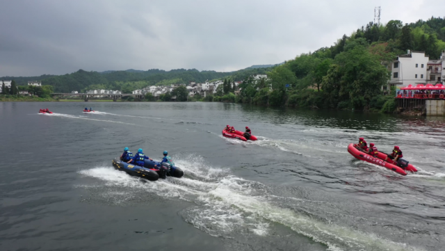 6月5日,在秋口镇,婺源县组织开展2023年防汛抢险应急救援综合演练,婺源县委副书记、县长周华兵,县委常委、常务副县长杨威参加演练活动。演练围绕“会商研判、工程调度;预警发布、巡查值守;人员转移、紧急避险;预警解除、灾后处置;地灾抢险、交通管制;队伍检阅;群众被困、应急救援;急流翻艇”等8个科目进行,充分检验了我县各抢险救援队伍的应急反应能力。
