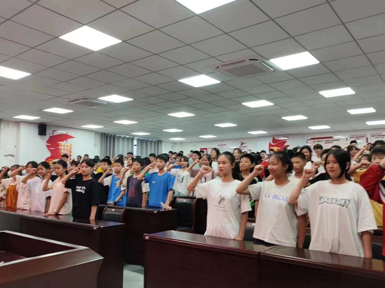 最后,六年级全体学生喊出了坚定有力的口号:沉着冷静,轻装上阵;认真答题,每分必争;信心百倍,勇夺第一。
