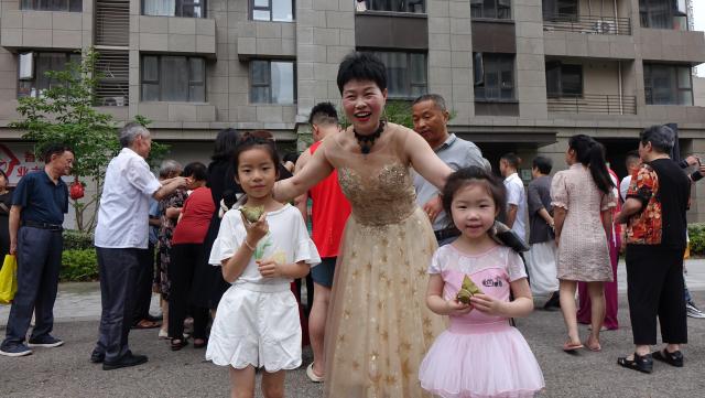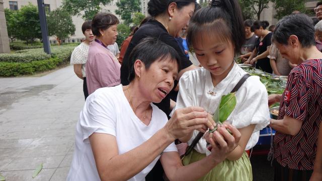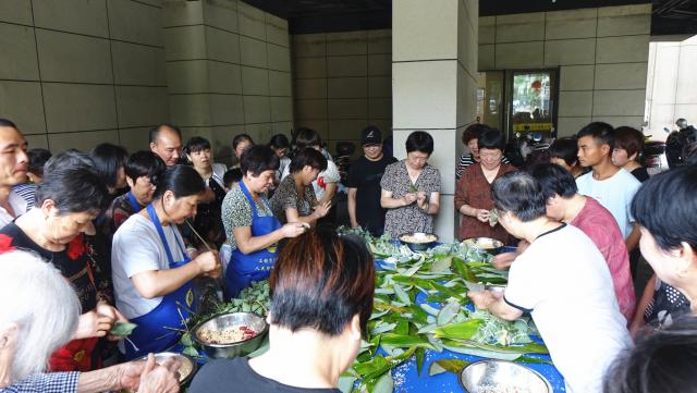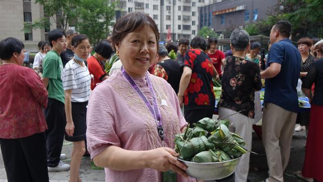 “大家在一起包粽子很热闹,去年我10分钟包了15个粽子,今年包了18个。听说下一个小区活动是重阳节,住在这个小区很开心。”8383岁的苏奶奶笑着说。