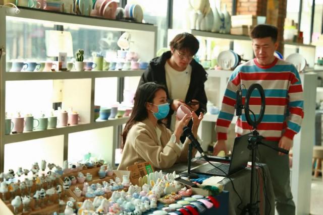 陶溪川邑空间摊主直播介绍陶瓷文创产品 图片由作者提供