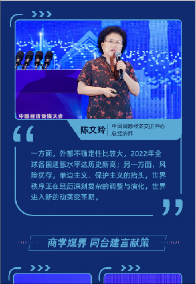 全国著名专家学者现身主题大会作主旨演讲。中国经济体制改革研究会副会长樊纲,中国建设银行原党委书记、董事长王洪章,中央党校(国家行政学院)经济学教研部主任韩保江,中国国际经济交流中心总经济师陈文玲,北京工商大学数字经济研究院院长白津夫,就如何克服当前困难,促进经济加快回升向好深入分析,提出了建设性的意见和建议。大会还检阅了年度经济报道成果,颁发了第34届中国经济新闻大赛特别奖和一等奖。