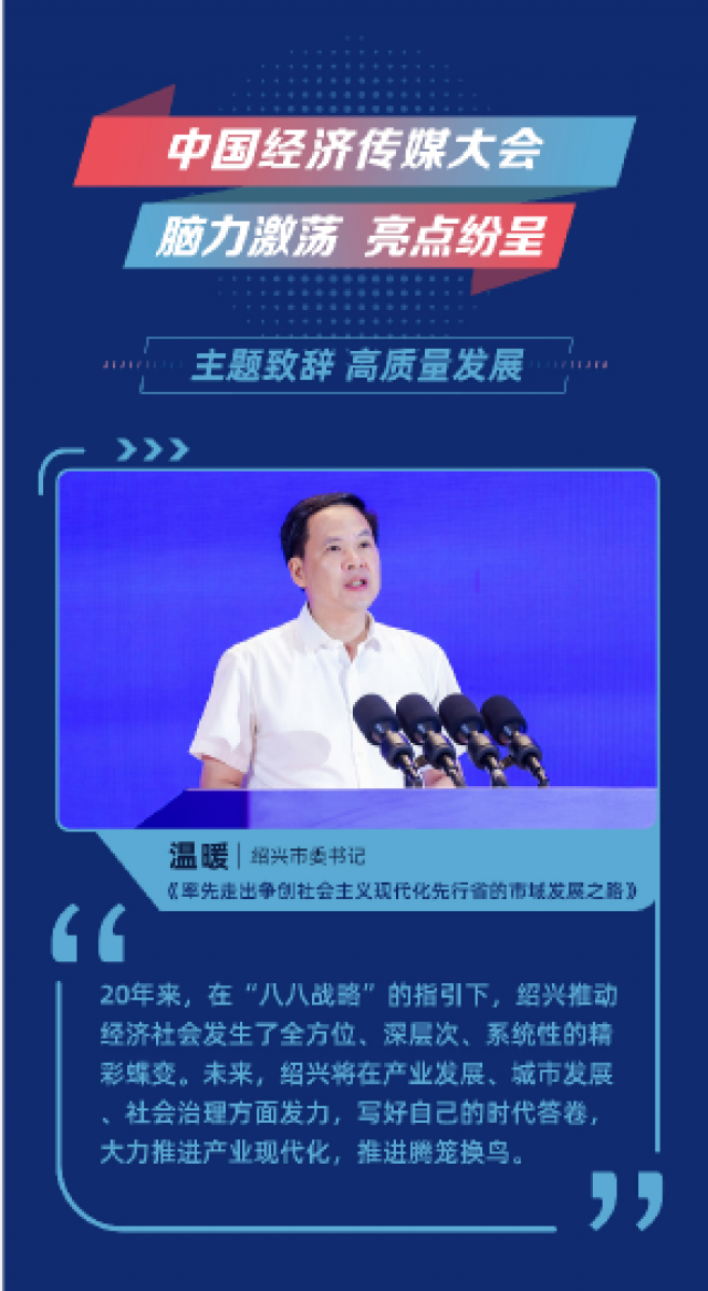 本次大会由中国经济传媒协会、绍兴市人民政府主办。来自全国169家机构的300多位经济媒体人、地方党政领导及企业家会聚绍兴,聚焦高质量发展这个首要任务,深入分析探讨中国经济发展态势、发挥政策效力和激发经营主体活力结合、数字赋能现代产业、金融服务实体经济、媒体深度融合发展、人工智能对媒体的影响等热点问题。