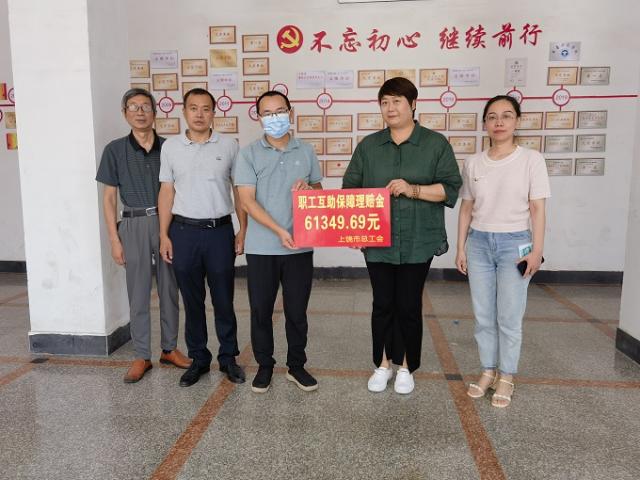 6月28日下午,上饶市总工会党组成员、经审会主任祝丽萍,市总工会经审办主任陈艳虹一行来铅山县走访慰问患病职工,并为其送上互助保障理赔金共计129693.97元。铅山县总工会党组成员、经审会主任谢祖斌、挂职副主席傅伊佳等陪同。