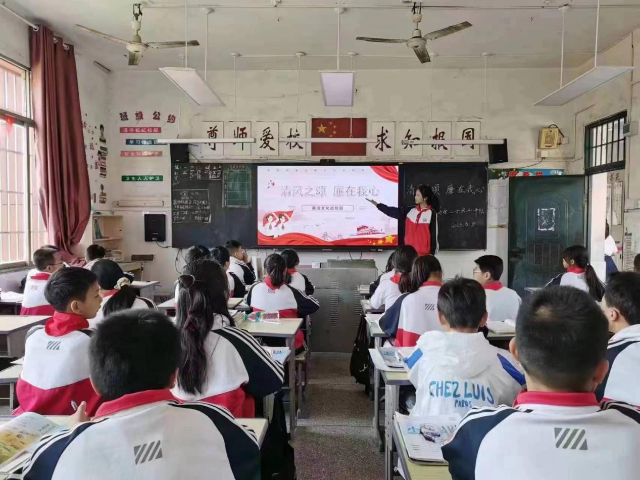 班会上,有的同学分享了西门豹、海瑞、于成龙、焦裕禄和孔繁森等清官的廉洁故事,有的讲述了秦桧、和珅、刘青山等贪官的下场,有的收集了有关廉洁的名言名句,还有的带领大家齐唱“廉政文化进校园”儿歌,用这些喜闻乐见的形式让同学们懂得廉洁的重要性。