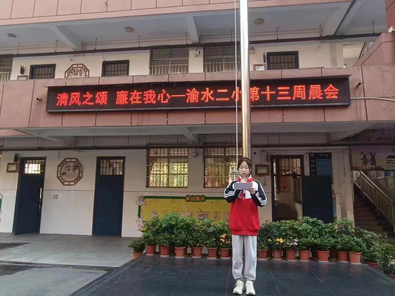 活动中,六(3)中队蒋钰婷同学进行国旗下的演讲。她说我国历史上有许多清正廉洁、务实为民的清官廉吏深受百姓的崇敬与爱戴,我们是新时代的小学生,是祖国未来的建设者,是华夏民族的希望,要向他们学习。“少年兴则国兴,少年强则国强”,反腐倡廉是我们义不容辞的职责,任重而道远。