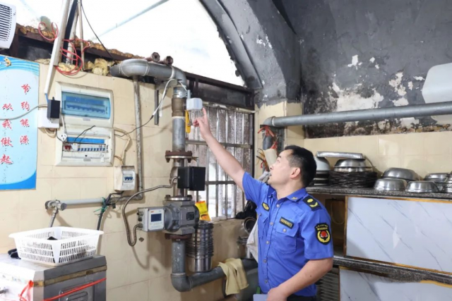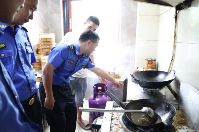 6月30日上午,按照相关部署,局燃气办会同全局五个市容市貌中队开展专项检查,对城区餐饮经营企业逐户开展排查,从气瓶、管道、燃气具、可燃气体报警装置、用气环境等方面全面排查存在隐患。