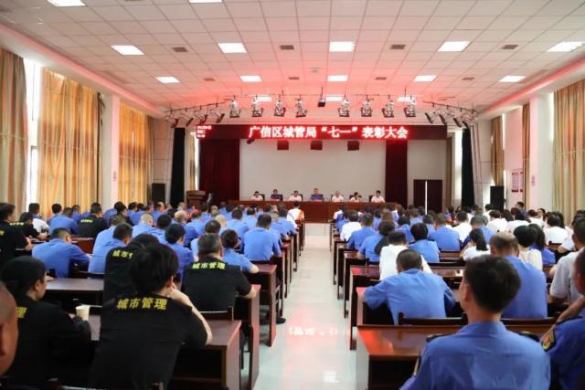 6月30日,广信区城管局举行庆祝中国共产党成立102周年“七一”表彰大会,局党组书记、局长陈琳出席会议并讲话,局党组成员、副局长张信生主持会议,局党组班子成员及全体干部职工共计210余人参加表彰大会。