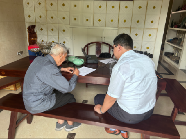 县公证处考虑到当事人的特殊情况,为了更方便当事人办理继承公证服务,于6月30日上午指派公证员邱玮与公证员助理刘书艺为当事人提供上门办理继承公证服务。公证员邱玮和公证员助理刘书艺到达现场后立即与当事人沟通并对当事人准备好的相关材料进行核实。随后公证员邱玮亲切地与2位当事人进行交谈,在交谈中可以肯定当事人虽然年事已高,但意识非常清晰,能清楚地表达自己的意思,符合办理公证的条件,于是公证员邱玮和公证员助理刘书艺按照公证程序为其办理了继承公证服务。