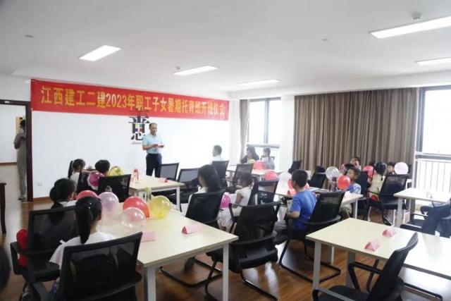 “我宣布江西建工二建职工子女暑期托育班开班啦...”,7月3日,在孩子们欢声笑语的氛围下,江西建工二建职工子女暑期托育班正式开班啦。集团工会副主席付文辉出席开班仪式并致辞,公司党委副书记、工会主席苏鹤宣布开班,暑托班老师、职工家长及子女等40多人参加开班仪式。