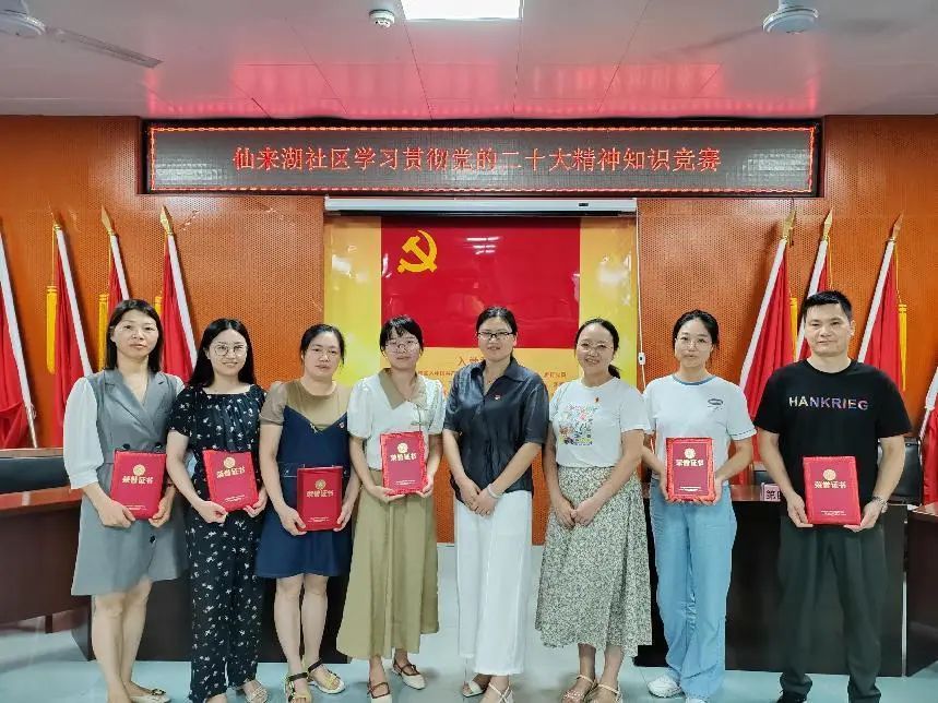 为进一步引导广大党员干部群众统一思想、凝聚共识,仙来湖社区举办党的二十大知识竞赛。知识竞赛考题聚焦习近平新时代中国特色社会主义思想、党的二十大精神、党章党规等内容,共7组选手参赛。