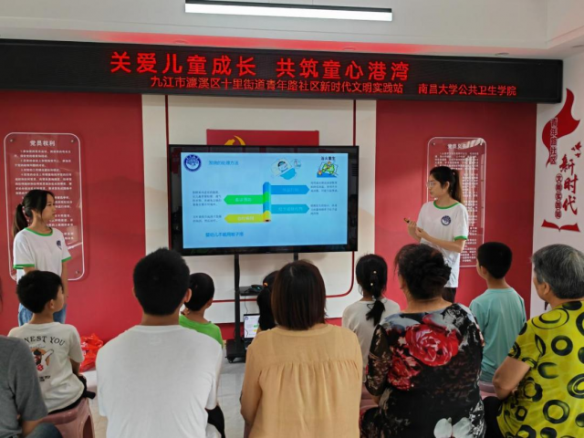 为在服务人民群众中展现新时代青年价值,传递新时代青年力量,7月5日,南昌大学公共卫生学院卫戍健康社会实践队赴九江市濂溪区十里街道青年路新时代文明实践站开展“爱心服务健康,行动践行文明”系列主题活动,聚焦“食品卫生快速检验”“孩童安全”两大重点内容,吸引了近百名居民参与活动。