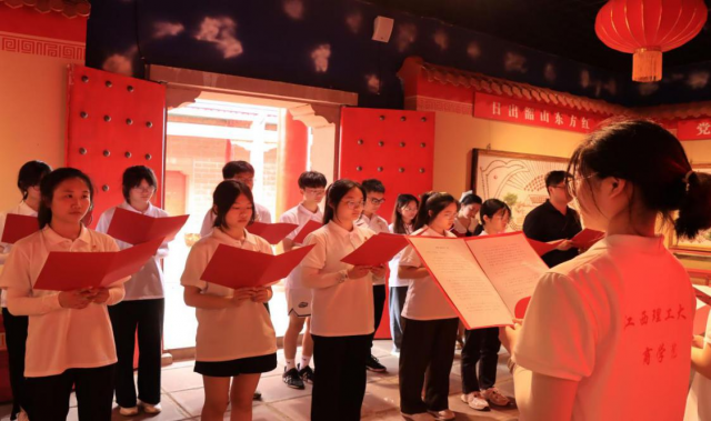 微党课结束后,实践队来到西湖李家德胜楼。在德胜楼,师生们共同学习了党的一大到党的二十大的发展历程,重温了中国共产党排除千难万险,带领人民走出困境、迈向繁荣富强的红色记忆。