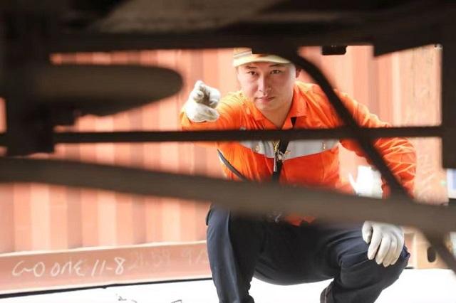 由于南昌向塘国际陆港内的货物列车基本上都是发往世界各地的外贸班列,所以对于列车的检查要格外仔细,这对胡世杰这些负责调车作业的工作人员也提出了更高的作业要求。“我们负责编组的列车大多是要长距离运行的,所以在车辆的状态和货物的装载状态的检查上要格外细心。”