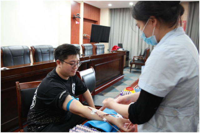 参与献血的人员在医护人员的引导下,认真填写献血登记表、测量血压、进行采血检验等,在确定符合献血标准后,大家热情献血,涓涓热血从手臂缓缓流向储血袋,一份份爱心汇聚成续航生命的暖流和力量。献血队伍里,有多次参加无偿献血的“公益达人”,也有满怀热情第一次献血的“热血青年”,有些员工即使内心害怕、感到疼痛,仍勇敢进行了无偿捐献,他们用行动诠释了奉献与担当。