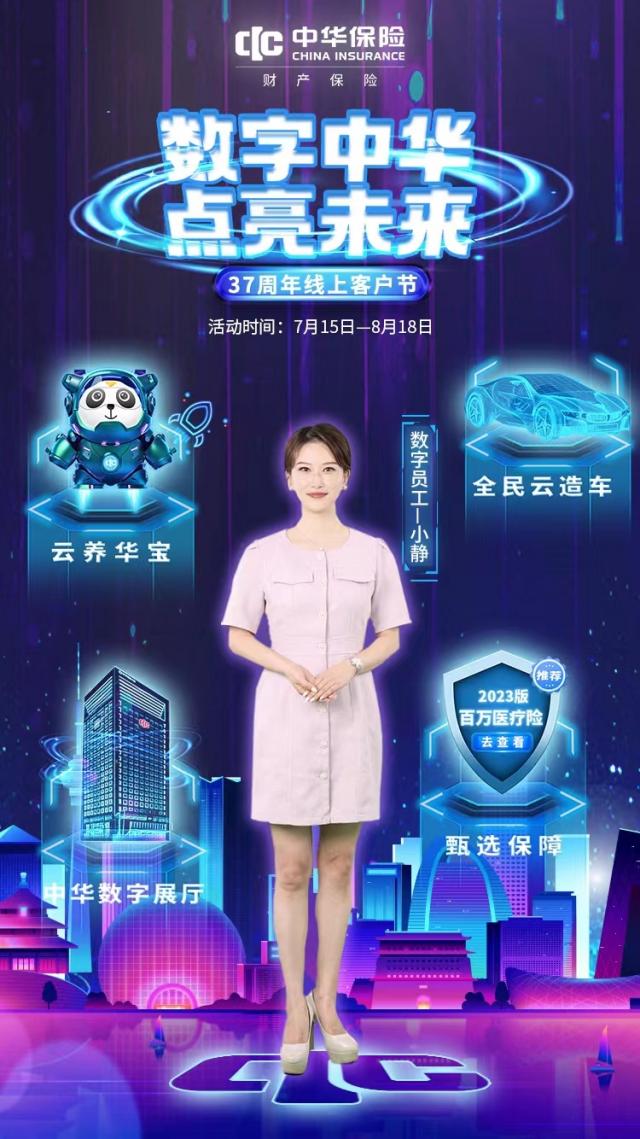 2023年是中华保险数字化转型落地之年,峥嵘37载,中华保险在数字化转型上已经涌现了一批彰显辨识度、具有影响力的应用成果。7月15日,中华保险围绕数字化转型之路开展以“数字中华 点亮未来”为主题的37周年线上客户节活动,倾力打造了一系列线上活动,推出多种数字化场景,本次客户节中华保险将首次推出公司数字员工,带来全新品牌形象,给用户带来沉浸式互动体验,让广大用户感受一场数字与科技的视觉盛宴,与客户共享公司数字化高质量发展成果。