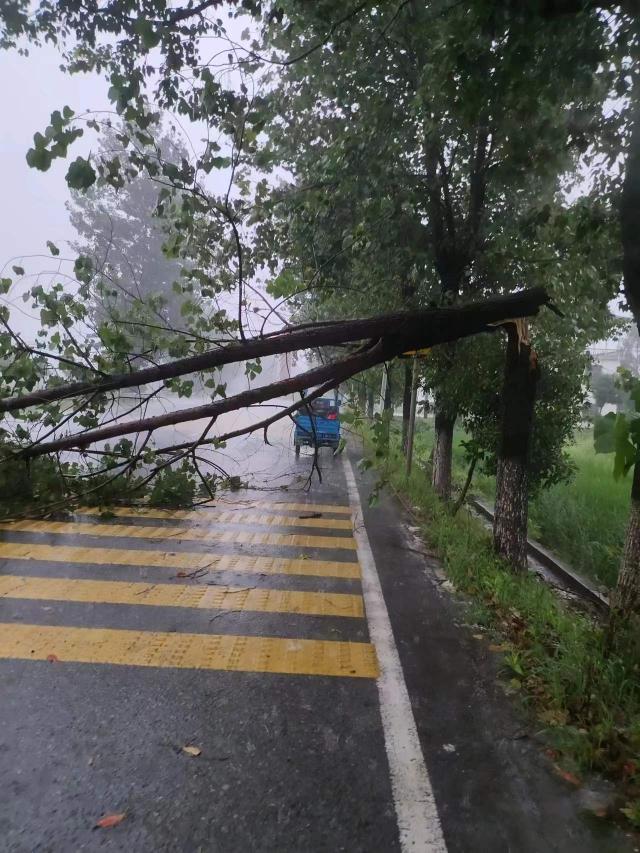 7月18日傍晚,受强对流天气影响,弋阳县狂风肆虐普降大雨,境内G353国道宁福线几株路树被大风吹倒,横亘在路面,造成道路半幅受阻。