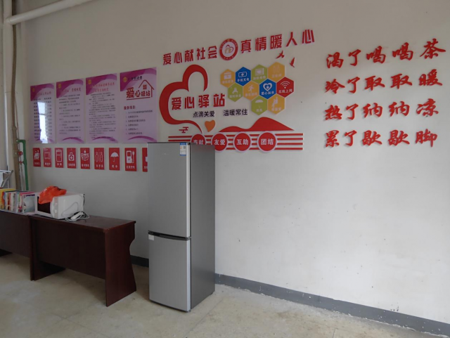 裴梅镇工会爱心驿站由县总工会指导,裴梅镇党委、政府精心打造,首次采用“工会+户家”模式。爱心驿站位于裴梅镇主要干道临街店面,站内配有桌椅、冰箱、饮水机、微波炉、空调等基础设施,免费提供充电、饮水、热饭、歇脚等服务。特别是针对近期的高温天气,爱心驿站还及时配备了藿香正气水、人丹和清凉油等防暑药品。