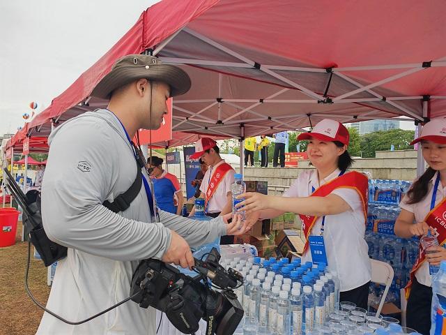 千人横渡赣江活动正式开始后,工行志愿者在活动补给点为来自全国各地的2000多名游泳健儿和工作人员免费发放饮用水,提供活动引导等便民服务。在朝阳江滩夜市现场,工行志愿者还现场开展银行福利活动宣传,引导工行持卡客户参与微信立减金抽奖等,助力点燃夜市消费高潮。