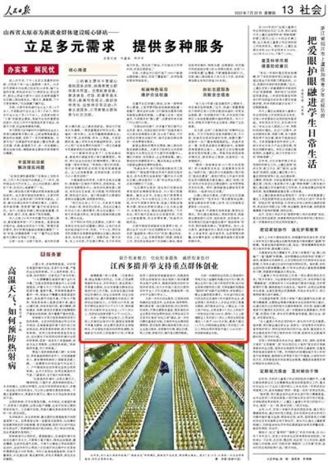 《人民日报》报道江西:多措并举支持重点群体创业