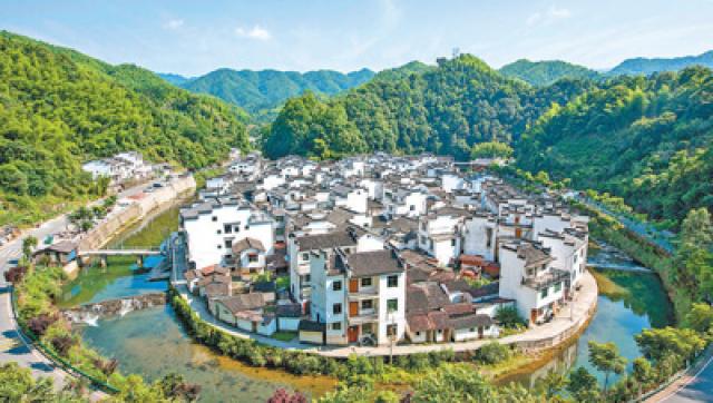 江西省上饶市婺源县菊径村是个颇为特别的小山村:源出大鄣山的一条清溪,环绕村落西、南、东三面。村前水流如环,秀美灵动;村后的后龙山郁郁葱葱,生机盎然。从空中俯瞰,村中粉墙黛瓦的徽派民居高低错落,整个村庄呈团扇状布局,宛如马蹄。