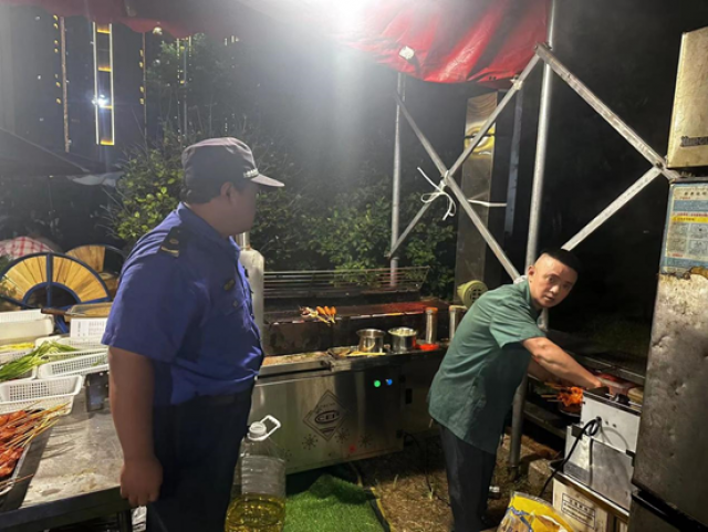 夏日的夜市人声鼎沸、热闹非凡。忙碌一日后,人们迎着夏日的晚风穿梭在人群中,嘴角洋溢着轻松灿烂的笑容。夜市中大大小小的店铺灯火通明,为人们提供了美味,却也带来了一定的困扰。对此,执法大队重点对蛤蟆街、紫金广场等夜市聚集地展开巡查,坚决杜绝出店经营、露天烧烤等油烟扰民的行为。同时,依托12345热线、民声通道、问政江西等投诉平台,确保群众投诉的油烟、噪声等问题及时处理、及时反馈。7月以来,共整治各类噪声问题60余起,检查督促各类餐饮商户拆除油烟设施80余家,规范整治露天烧烤9起。