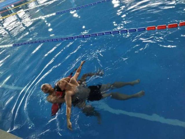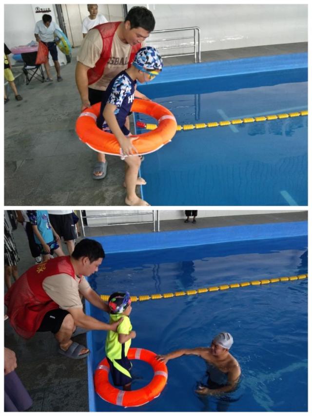 专职游泳教练现场示范溺水事件施救演练,为小朋友们生动地上了一堂溺水事件紧急施救课程。模拟溺水发生后如何施救。并告诫同学们,当身边有溺水事故发生后,未成年人不能贸然下水施救;若发现有人溺水,应立刻拨打119或向当地成年人呼救。同时提醒家长朋友,做好监管监督。
